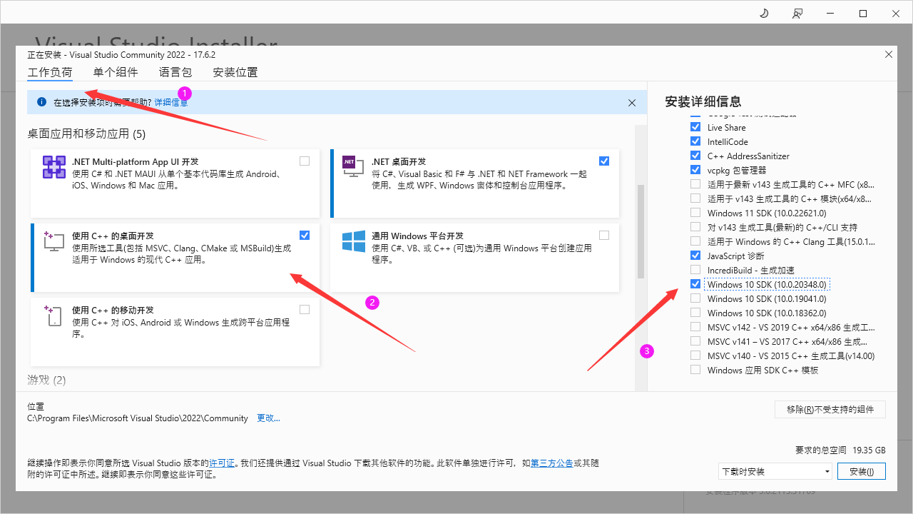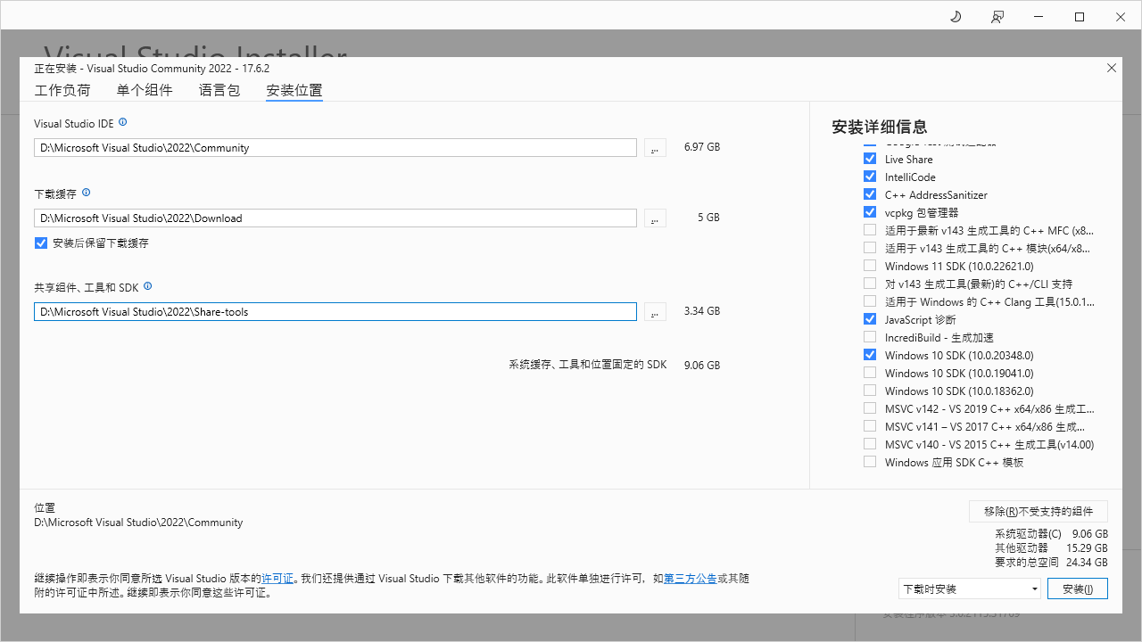 - 安装位置tab可参考设置,也可以默认路径,然后点击安装(安装按钮在窗口右下角)