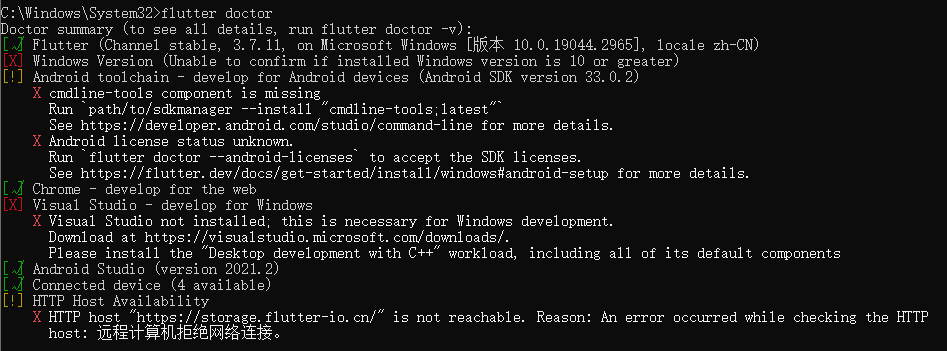 无法确认安装的Windows版本是否为10或更高,解决方案:降低flutter版本(当前版本为3.3.3)
