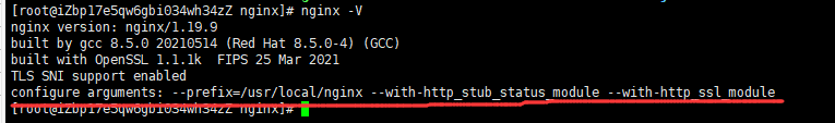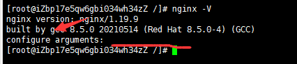 nginx- V,可以看到configure arguments:右边的值已经不为空了,证明配置成功了。