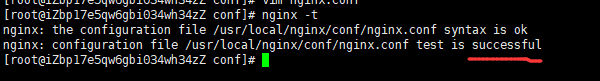 nginx -t查看配置是否错误,显示有successful代表配置没有错