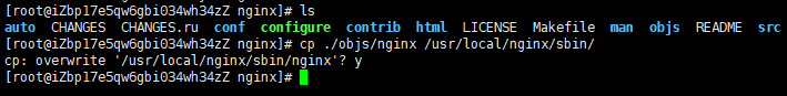 sbin文件夹下的nginx文件:cp ./objs/nginx /usr/local/nginx/sbin/,它会询问你是否确认覆盖,输入y后回车就行,同样需要注意你实际的nginx安装路径