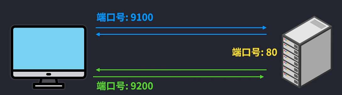 虽然有MAC地址和IP地址可以抵达对方主机,但是对方主机可能运行着无数多个软件进程,此时就需要用到端口号来做为地址来定位了。如客户端这里生成不同的端口号,即使同时访问HTTP端口号80也是没有问题的,因为此时可以根据不同的源端口号来做出响应就可以了,所以传输层(运输层)在网络层的端到端基础上实现了服务进程到服务进程的传输。