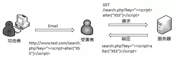 有些情况下用户在请求后台时候,会携带一部分数据。当客户端进行访问某条链接时,攻击者可以将恶意代码植入到URL,如果服务端没有对URL携带的参数做判断或者进行过滤处理,直接返回响应页面,那么XSS攻击代码就会一起被传输到用户的浏览器,从而触发反射性XSS。